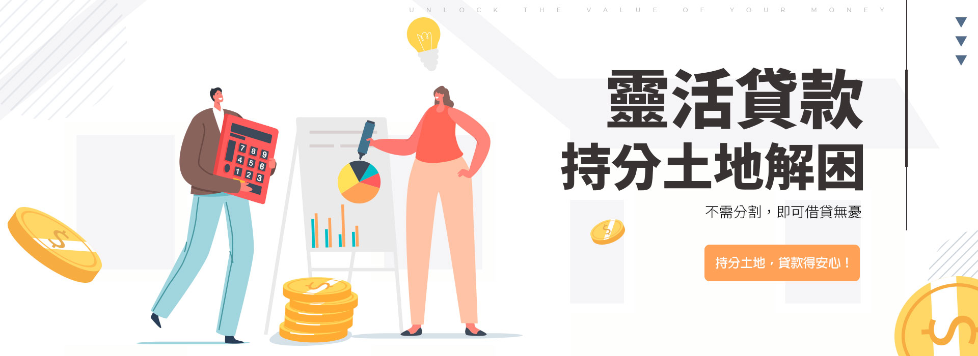 透過持分土地的價值作為擔保物,向金融機構申請貸款。 -